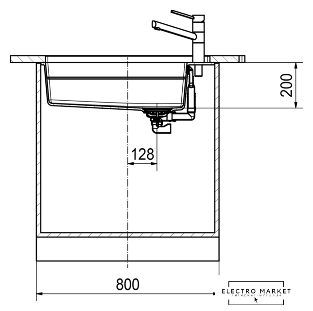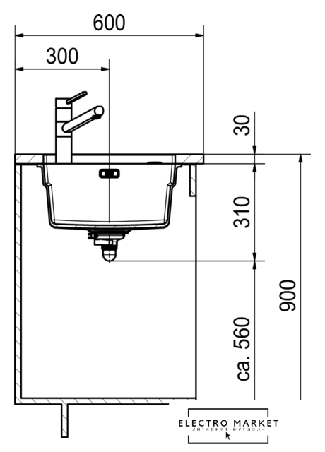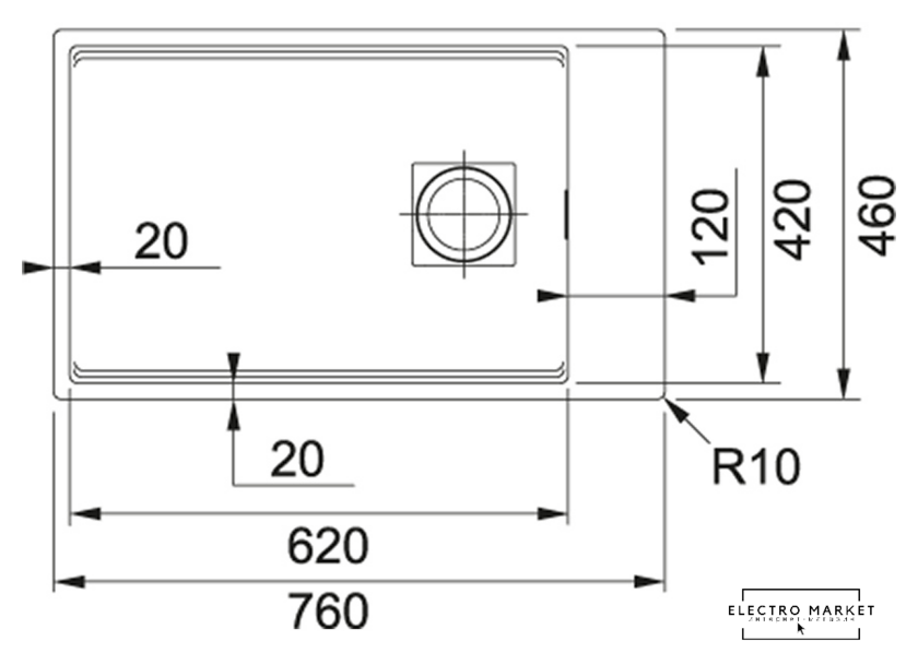врезная под столешницу, искусственный камень, размеры: 71x45 см, глубина чаши: 19 см, в шкаф шириной от 80 см