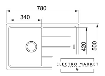 врезная на столешницу, искусственный камень, размеры: 78x50 см, в шкаф 45 см