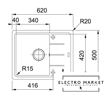 врезная на столешницу, искусственный камень, размеры: 62x50 см, в шкаф 45 см