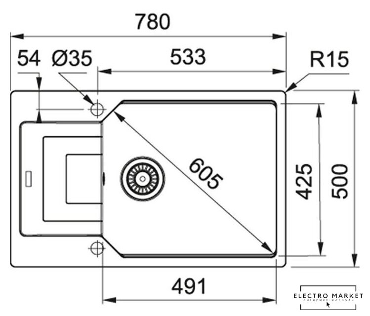 врезная на столешницу, искусственный камень, размеры: 78x50 см, глубина чаши: 20 см, в шкаф шириной от 45 см, клапан-автомат