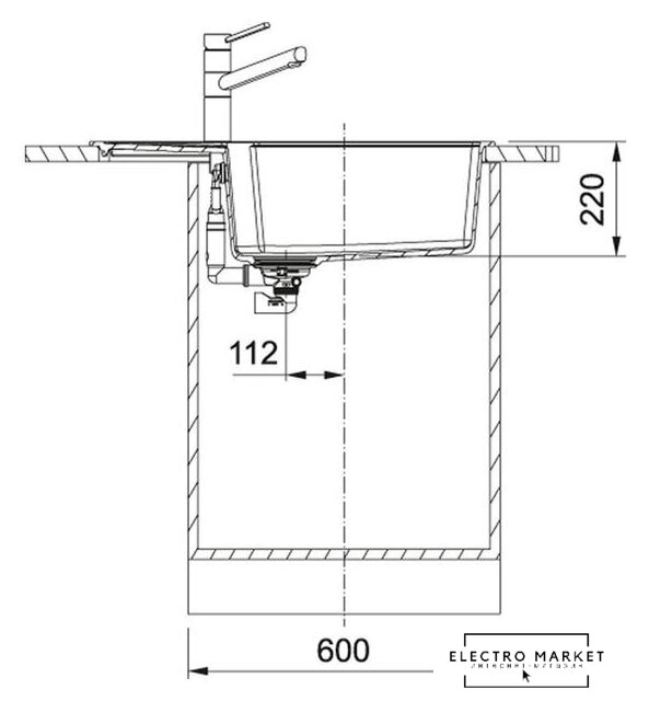 врезная на столешницу, искусственный камень, размеры: 62x50 см, глубина чаши: 20 см, в шкаф шириной от 45 см, клапан-автомат