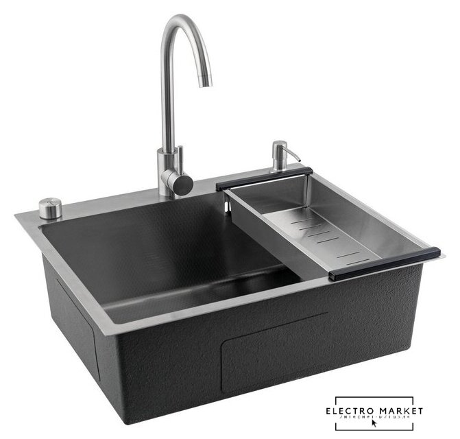 | Комплектация | Полуавтоматический сифон Pop up, коландер(Сатин), гофра, дозатор для моющего средства(Сатин), мойка(Сатин), Смеситель |