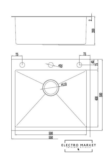 врезная на столешницу, нержавеющая сталь, размеры: 78x48 см, глубина чаши: 22 см