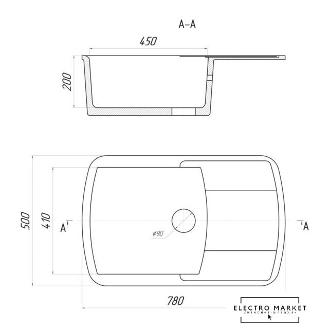 врезная на столешницу, нержавеющая сталь, размеры: 40x50 см, глубина чаши: 20 см