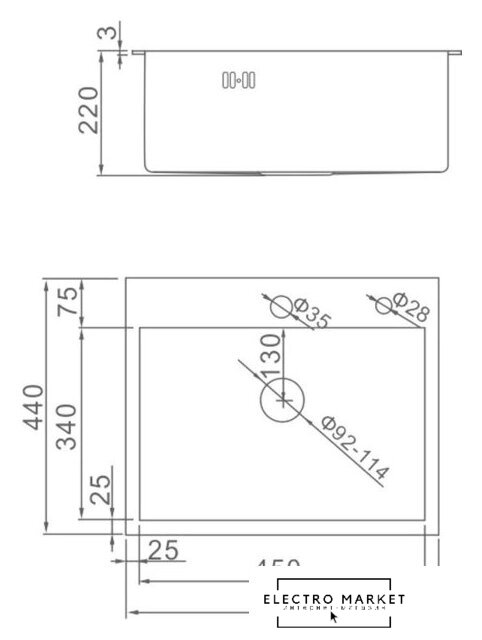 | Длина мойки | 44 см |