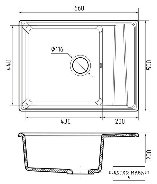 врезная на столешницу, искусственный камень, размеры: 66x50 см, в шкаф 50 см