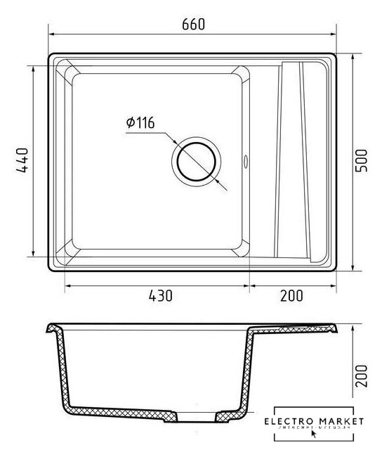 | Ширина мойки | 66 см |