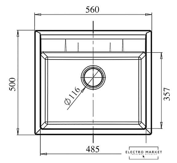 врезная на столешницу, искусственный камень, размеры: 56x50 см, в шкаф 60 см