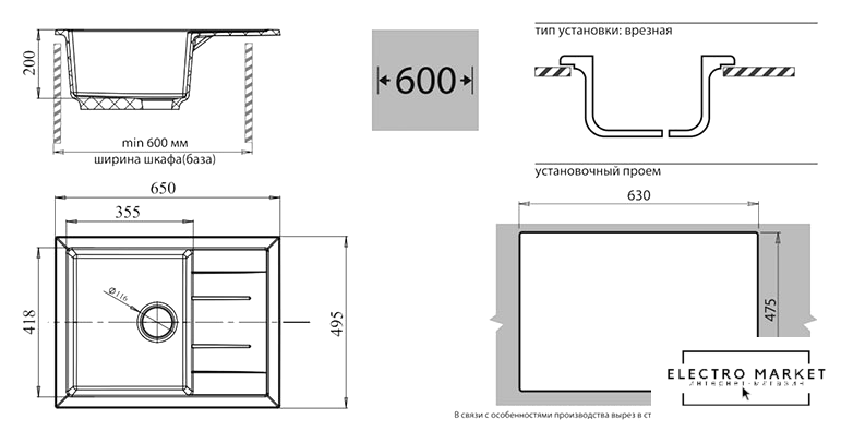 | Способ установки | врезная на столешницу |