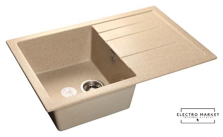 врезная на столешницу, кварц, размеры: 76x50 см, глубина чаши: 20 см, в шкаф шириной от 45 см