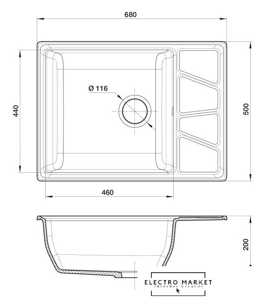 врезная на столешницу, искусственный камень, размеры: 68x50 см, в шкаф 60 см