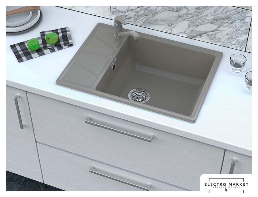врезная на столешницу, кварц, фактура: матовая, размеры: 50x76 см, глубина чаши: 20 см, в шкаф шириной от 50 см