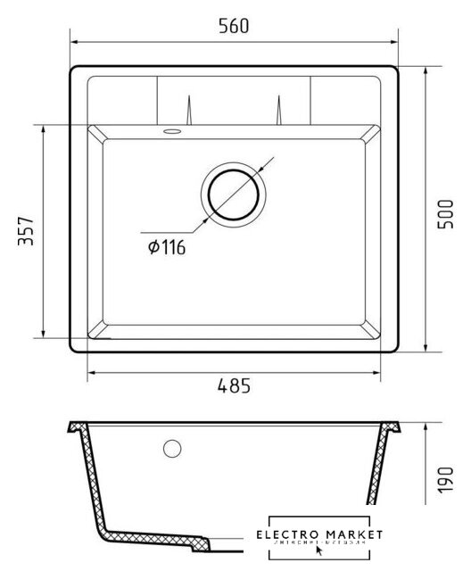 врезная на столешницу, искусственный камень, размеры: 65x50 см, глубина чаши: 18 см, в шкаф шириной от 50 см