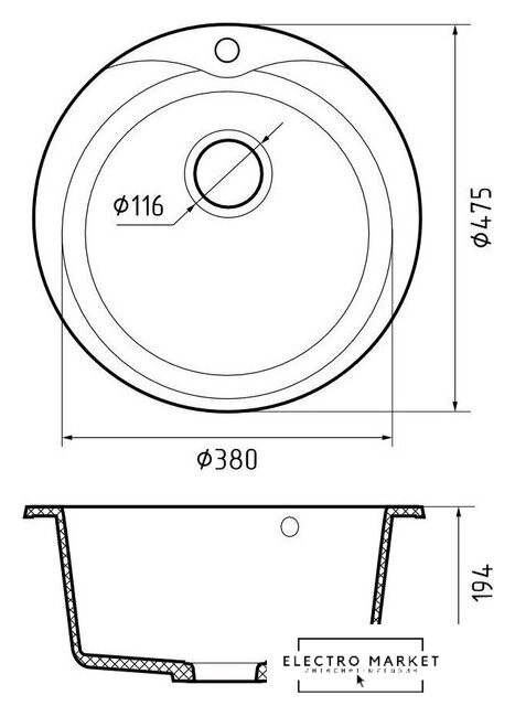 врезная на столешницу, искусственный камень, размеры: 47.5x47.5 см, глубина чаши: 19.4 см, в шкаф шириной от 45 см