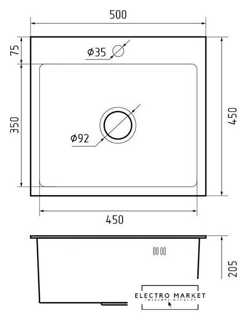 врезная на столешницу, искусственный камень, размеры: 51x50 см, глубина чаши: 24.5 см, в шкаф шириной от 50 см