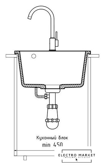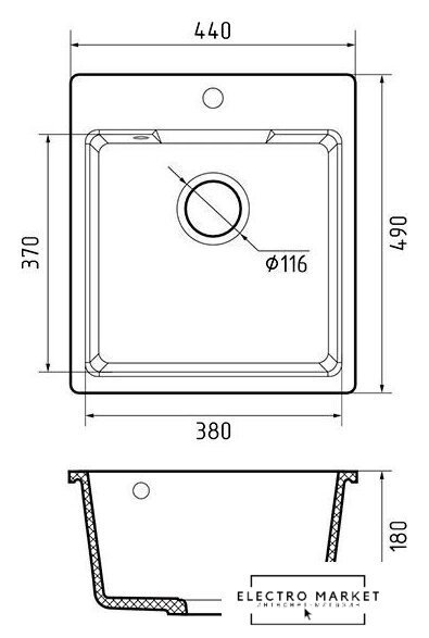 врезная на столешницу, искусственный камень, размеры: 44x49 см, в шкаф 45 см