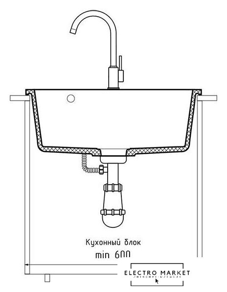 врезная на столешницу, искусственный камень, размеры: 58x49 см, в шкаф 60 см