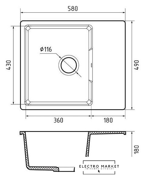 Диаметр сливного отверстия | 4.6" |
