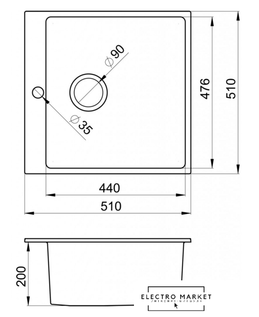 врезная под столешницу, искусственный камень, размеры: 43x46 см, глубина чаши: 19 см, в шкаф шириной от 50 см