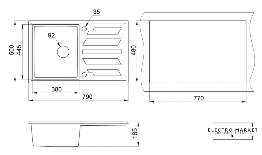 | Ширина мойки | 79 см |