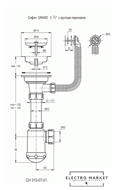 | Диаметр сливного отверстия | 3.5" |