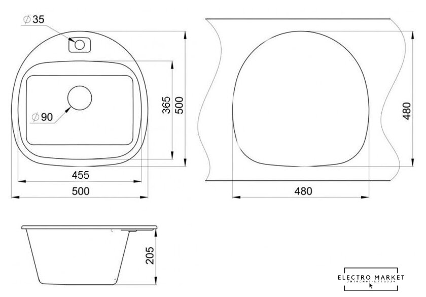 врезная на столешницу, гранит, фактура: матовая, размеры: 51x50.5 см, глубина чаши: 19 см, в шкаф шириной от 50 см
