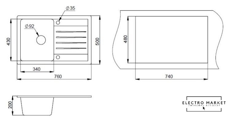 врезная на столешницу, искусственный камень, размеры: 76x50 см, глубина чаши: 20 см, в шкаф шириной от 60 см