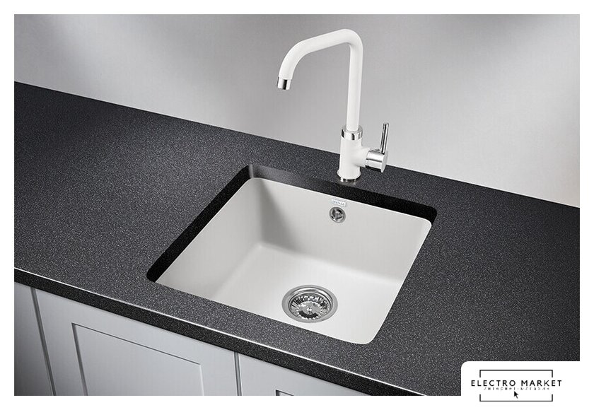 врезная на столешницу, искусственный камень, фактура: матовая, размеры: 45.5x46 см, глубина чаши: 20 см, в шкаф шириной от 50 см