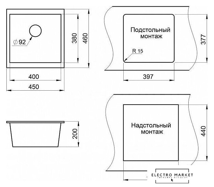 врезная на столешницу, кварц, фактура: матовая, глубина чаши: 18 см, в шкаф шириной от 60 см