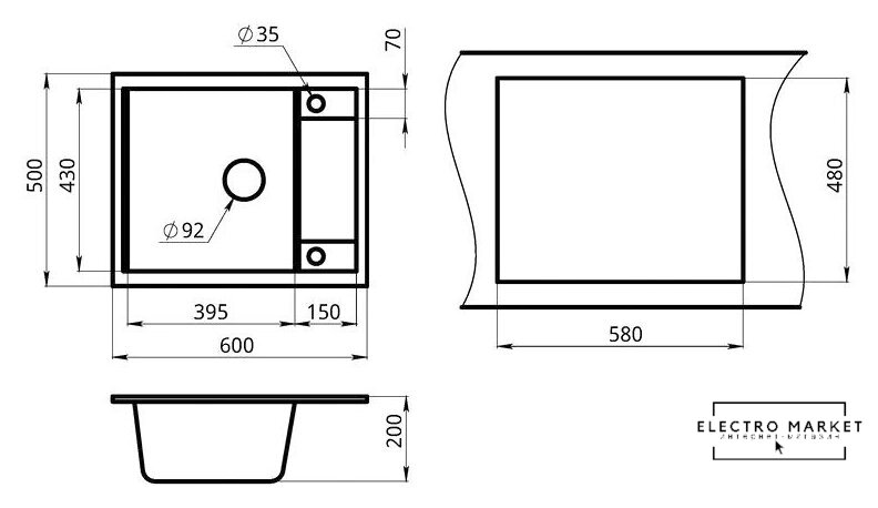 врезная на столешницу, искусственный камень, размеры: 60x50 см, в шкаф 50 см