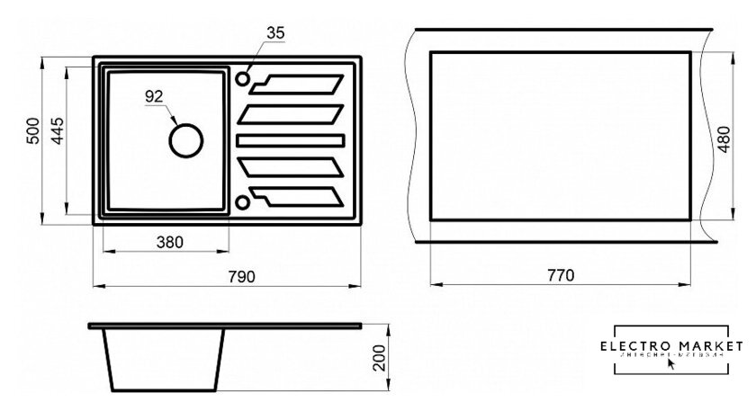 врезная на столешницу, нержавеющая сталь, размеры: 78x48 см, глубина чаши: 22 см