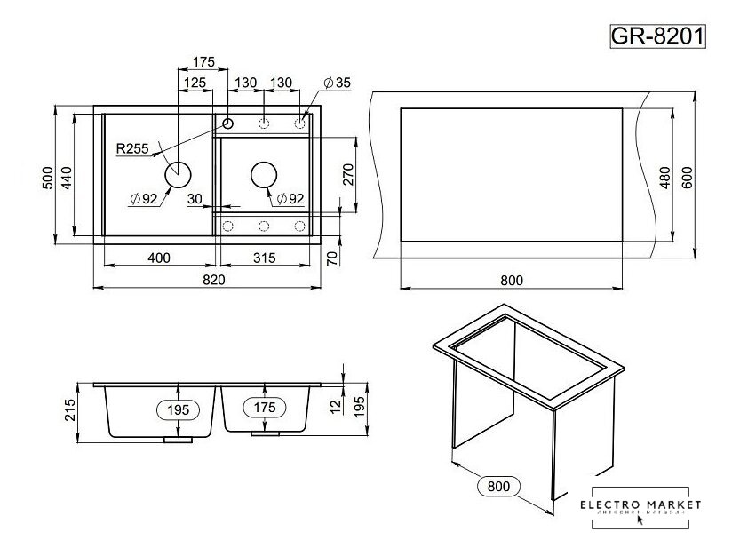 врезная под столешницу, искусственный камень, размеры: 55.5x46 см, глубина чаши: 20 см, в шкаф шириной от 60 см