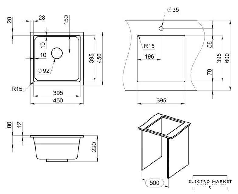 врезная на столешницу, искусственный камень, размеры: 50x51 см, глубина чаши: 19 см, в шкаф шириной от 60 см