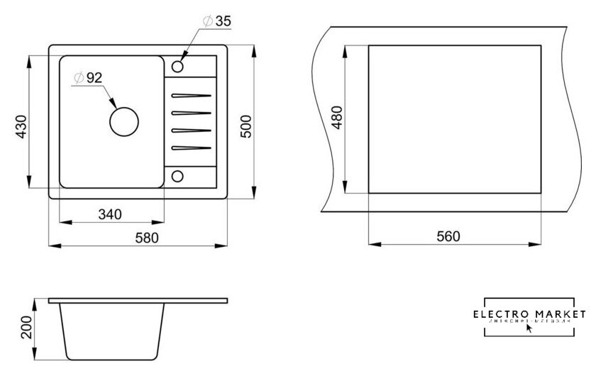 врезная на столешницу, кварц, размеры: 58x50 см, глубина чаши: 20 см, в шкаф шириной от 45 см