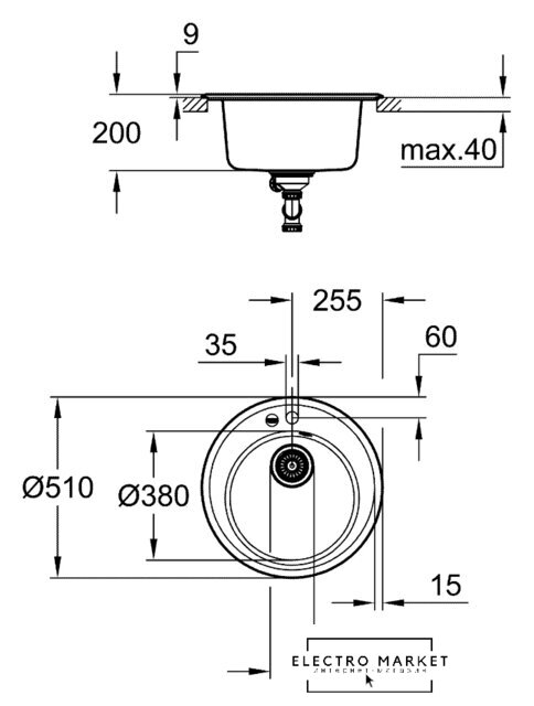 врезная вровень со столешницей/врезная на столешницу, нержавеющая сталь, размеры: 51x59 см, глубина чаши: 20 см