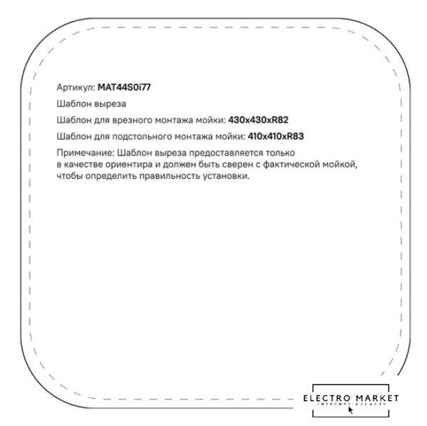 | Комплектация | крепления (2 комплекта), сифон (плоский), выпуск (донный клапан), шаблон для врезки, перелив, мойка |