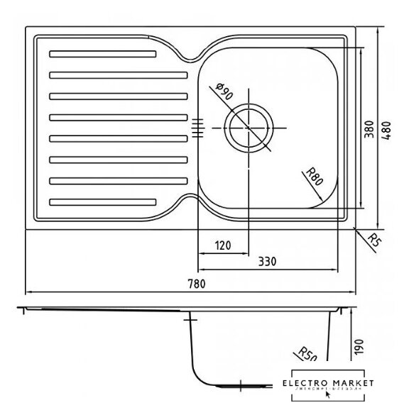 | Ширина мойки | 78 см |