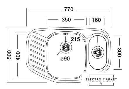 врезная на столешницу, искусственный камень, глубина чаши: 20 см, в шкаф шириной от 75 см
