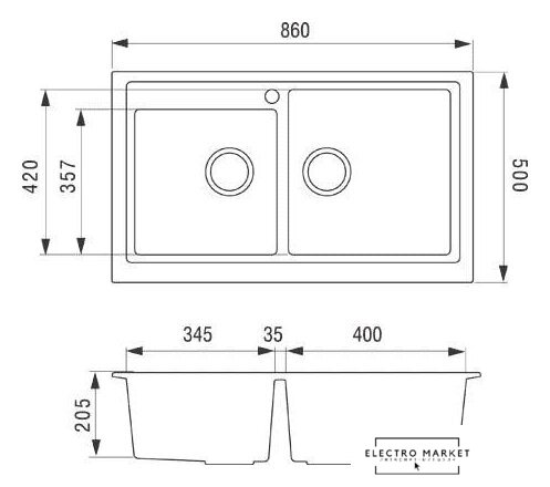 Комплектация | мойка, крепеж, сифон, выпуск, шаблон |