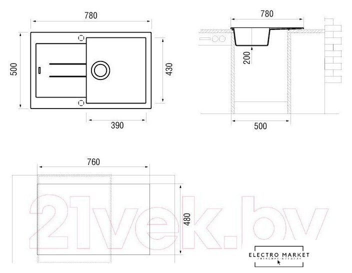 Комплектация | крепления, сифон, мойка |