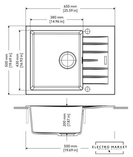 врезная на столешницу, гранит, размеры: 91.4x45.7 см, глубина чаши: 21.6 см, в шкаф шириной от 60 см