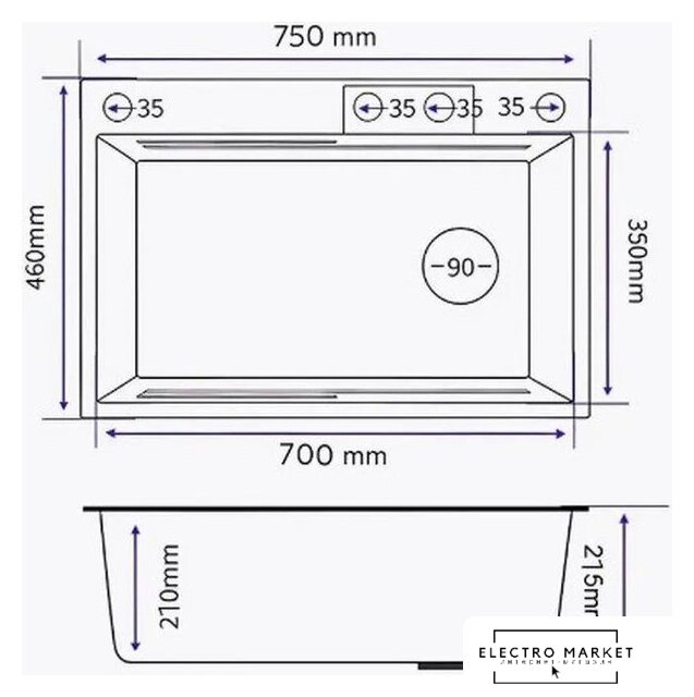 врезная на столешницу, нержавеющая сталь, фактура: матовая, размеры: 60x48 см, глубина чаши: 22 см