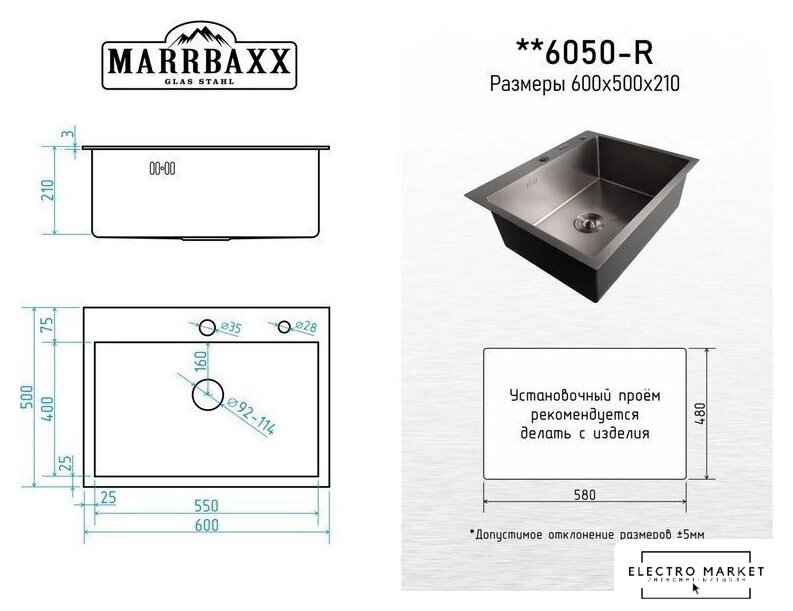 врезная на столешницу, искусственный камень, размеры: 76x50 см, глубина чаши: 20 см, в шкаф шириной от 60 см