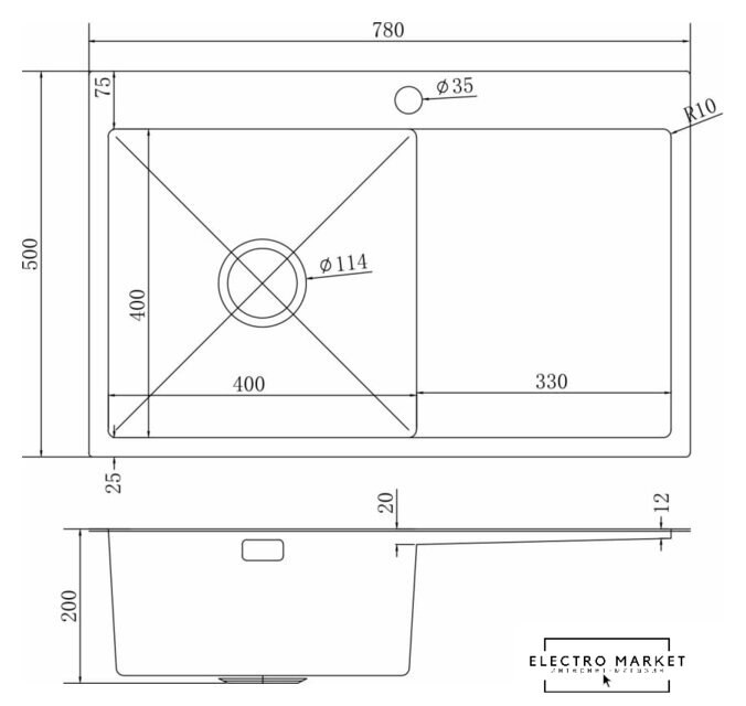 врезная под столешницу, нержавеющая сталь, фактура: полированная