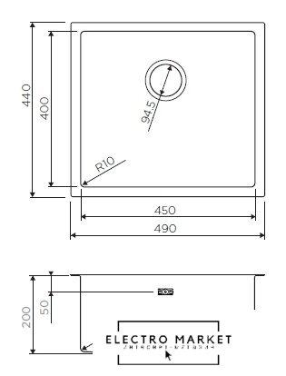 врезная на столешницу/врезная под столешницу/врезная вровень со столешницей, нержавеющая сталь, размеры: 49x44 см, в шкаф 50 см