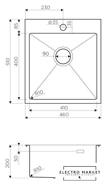 врезная на столешницу/врезная под столешницу, нержавеющая сталь, размеры: 44x54 см, глубина чаши: 20 см, в шкаф шириной от 60 см