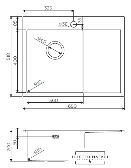 врезная на столешницу, нержавеющая сталь, размеры: 65x51 см, в шкаф 40 см