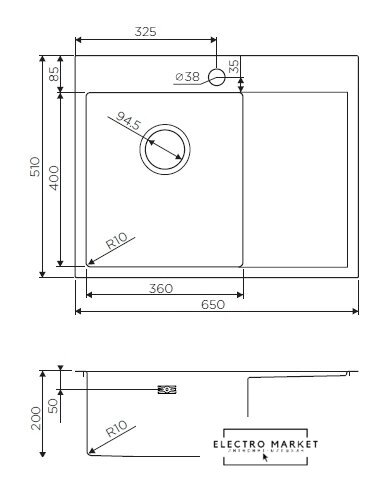 врезная на столешницу, нержавеющая сталь, фактура: матовая/полированная, размеры: 65x51 см, глубина чаши: 20 см, в шкаф шириной от 40 см, клапан-автомат
