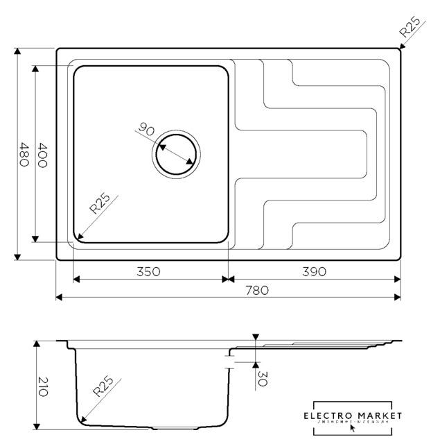 врезная на столешницу/врезная под столешницу, нержавеющая сталь, размеры: 53x41 см, глубина чаши: 18 см, в шкаф шириной от 60 см