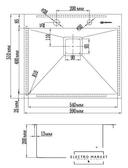 врезная на столешницу/врезная вровень со столешницей, нержавеющая сталь, фактура: полированная, размеры: 59x51 см, глубина чаши: 20 см, в шкаф шириной от 60 см